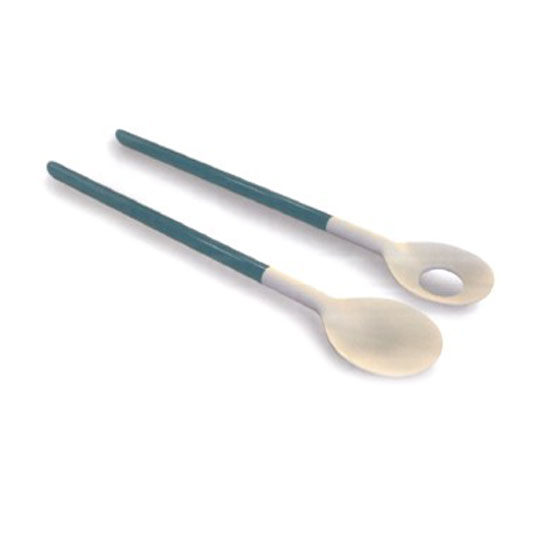 This salad spoon comes with a blue and white finish. The long shaft allows a firm and comfortable grip. Made of top grade materials, this salad spoon is strong and long lasting.
