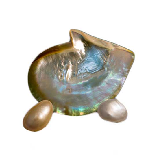 Displayed are two highly precious pearls of Pinctada maxima clams. The two smooth and glossy pearls are meticulously collected from deep water. They come with asymmetrical shapes, best reflecting their primal beauty.