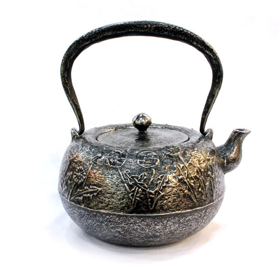 The tea kettle delights you with its intricate, embossed patterns. The rugged sand-cast iron construction ensures lasting durability and beauty. This exquisite teapot makes a stunning addition on your tea table.