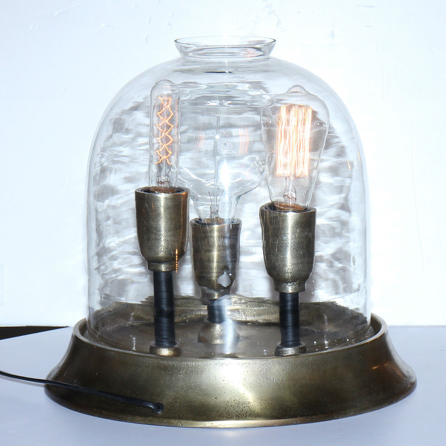 Sand Castes Aluminium Triple Light with Mouthblown Glass