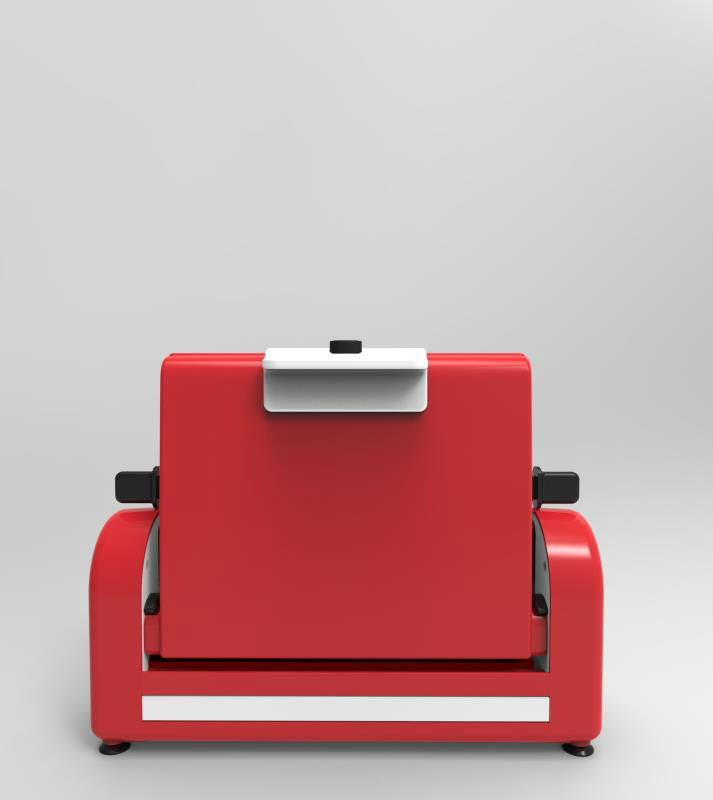 This electrical toaster is designed in bright orange and yellow for an eye-catching look.