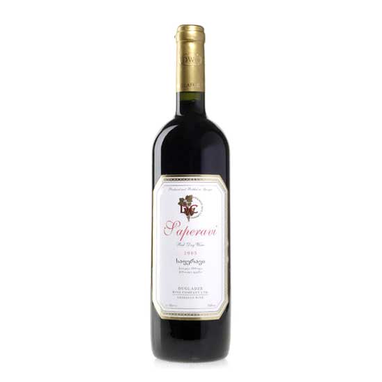 The displayed Saperavi Wine is a dry, elegant red wine from Georgia. It features a deep red hue and aromatic scents. This dry red wine goes well with grilled red meat dishes.