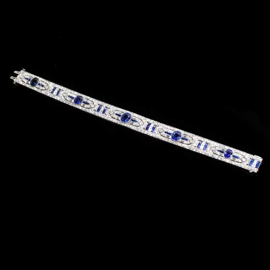 Featured here is a sleek piece of bracelet made of sapphire and diamond for dazzling twinkle. The Kashmir sapphires offer tranquil romance in blue. This elegant piece is determined to line your wrist with jaw-dropping beauty.