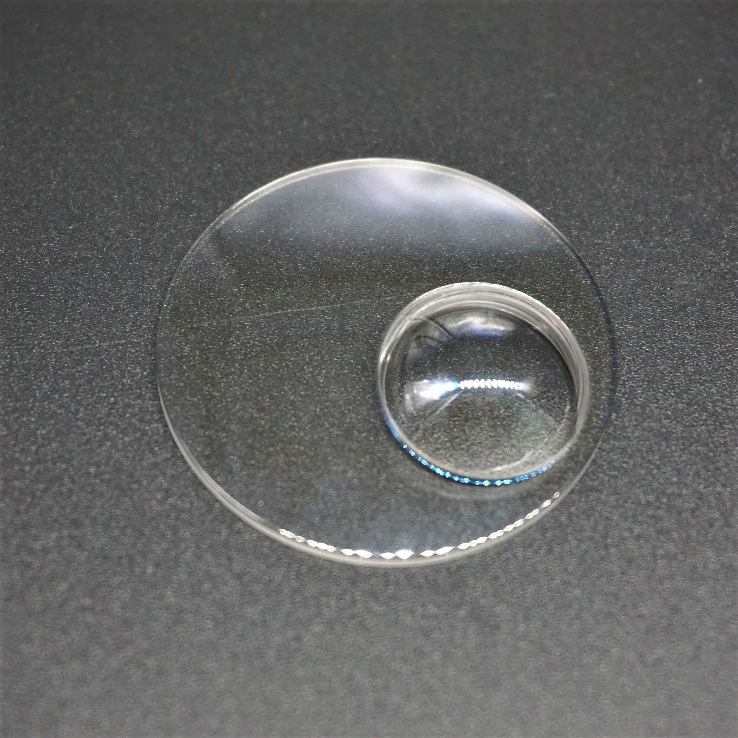 The watch glass is made of sapphire crystal and has high luster and excellent hardness. It comes in a transparent design and has date window on the exterior. This watch glass flaunts a neat and clean appearance and makes an excellent component for high end watches.