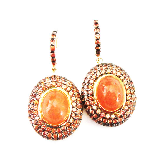 This is a pair of earrings that features orange sapphires and moon stones. They are highly polished to deliver maximum luster at all angles. This pair of earrings will add subtle elegance to your outfit.