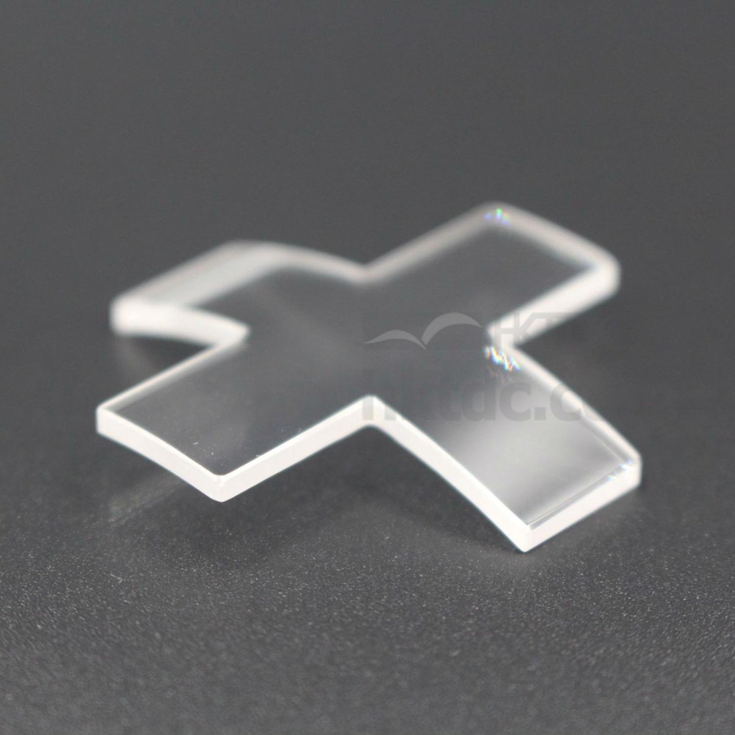 The displayed jewelry component comes in an irregular cross shape and has a clear body. It is made of sapphire crystal and is available with any coating and metallization. This jewelry component can be customized to fit all kinds of jewelry and flaunts outstanding craftsmanship.