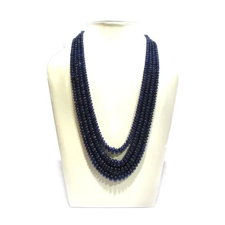 The necklace is strung with abundant flat-shaped sapphire beads in alluring dark blue. The uniform design lends wearers a modest and elegant image which will not be missed. This necklace is an easy-to-match add-on to your high-end combination.