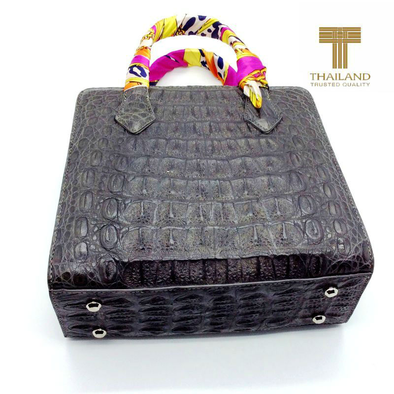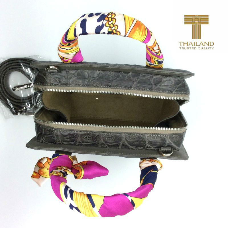 Sara Genuine Crocodile Hornback Leather Bag - this bag has a top handle, and is featuring one large internal compartment as well as one internal zipped pocket and one small pocket.