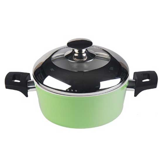 The sauce pot delights you with its mild green finish. It comes with two heat-resistant handles for safe and comfortable carrying. This sauce pot makes a great companion for every households.