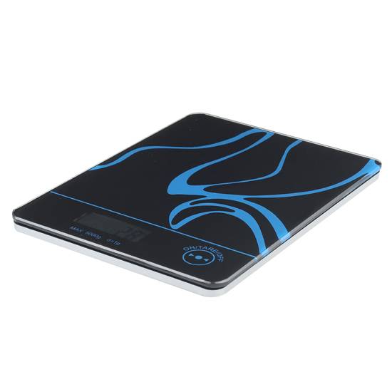 This is a scale for kitchen. It is designed with square shape with special patterns. It has an auto zero function.
