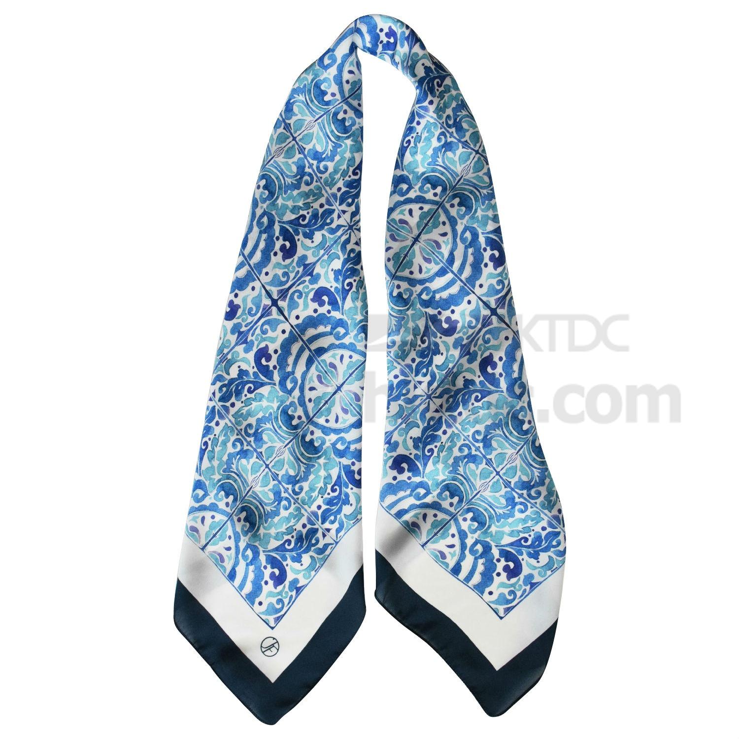 The beautiful tones of this patterned ladies’ scarf exude an air of romance with summer inspirations from the Similan Islands, flaunting off an elegant look without being overbearing. Its 100% silk twill tailor further seizes the day in comfort and showcases a clean square cut to ease twisting, folding and more for versatile accessorizing.