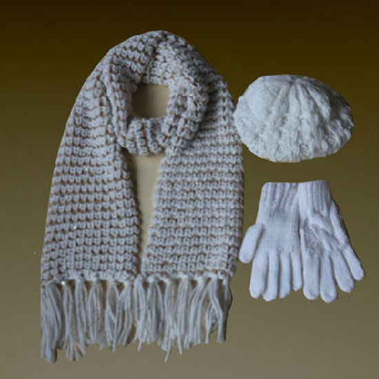 This is a scarf set that includes a scarf, a hat and a pair of gloves with a matching design. Made of quality material, all the pieces are soft and comfortable to wear. This scarf set is easy to mix and match with your outfit.
