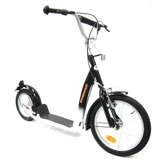 This stylish scooter bike is designed with a 16" front wheel and a 12" rear wheel with air tires. The sturdy alloy frame guarantees safe riding and a long service life. It makes an excellent toy for kids to learn coordination and balance.