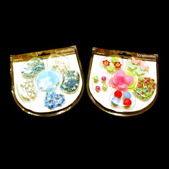 Featured here are different embellishments for scrap-booking, such as buttons, flowers and brads. With such a great variety of scrap-booking ornaments, these sets provide the users with more choices to style up their sketchbooks, cards, etc. These lovely ornaments come in many colors, giving the users more color choices for decoration.