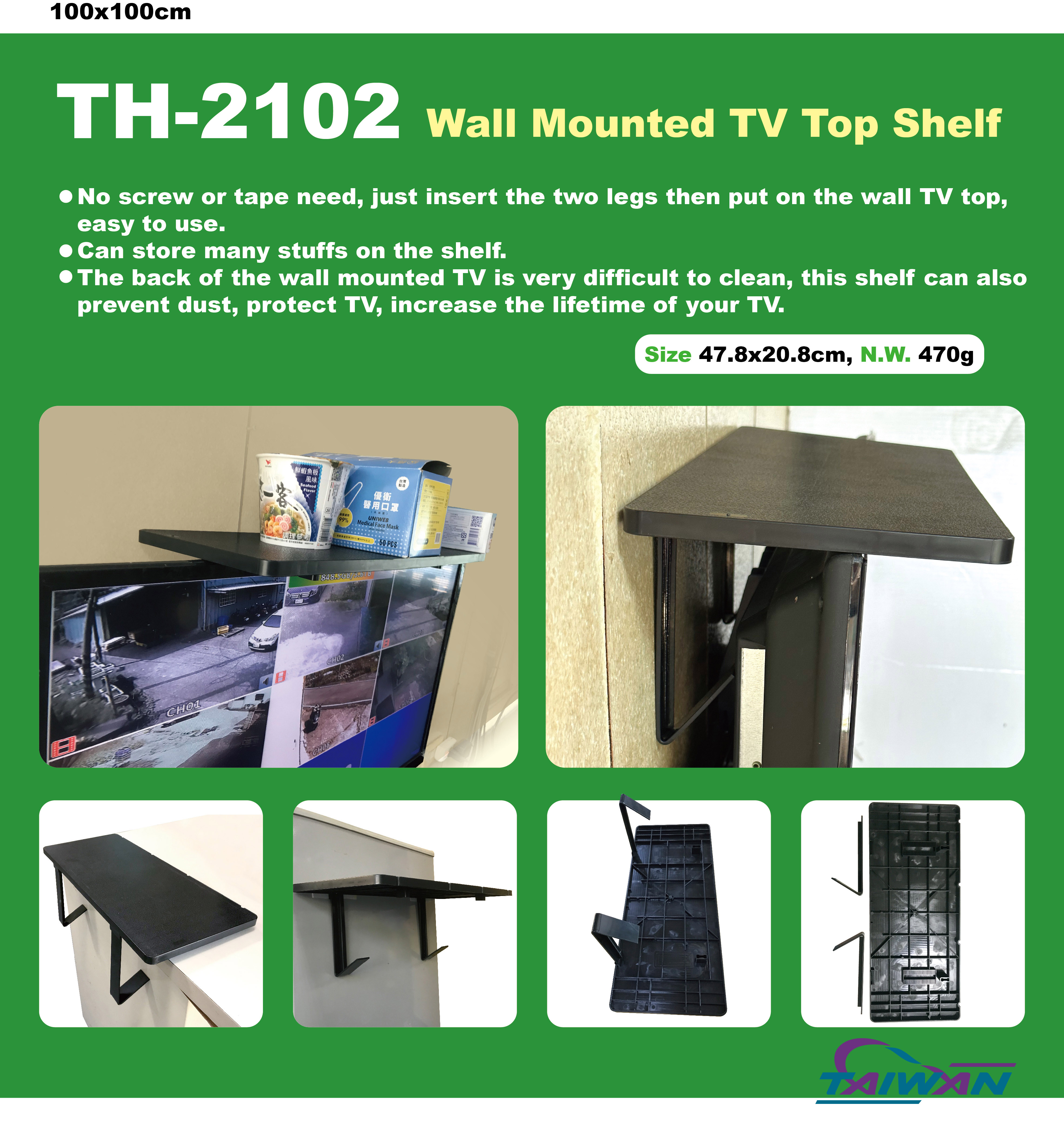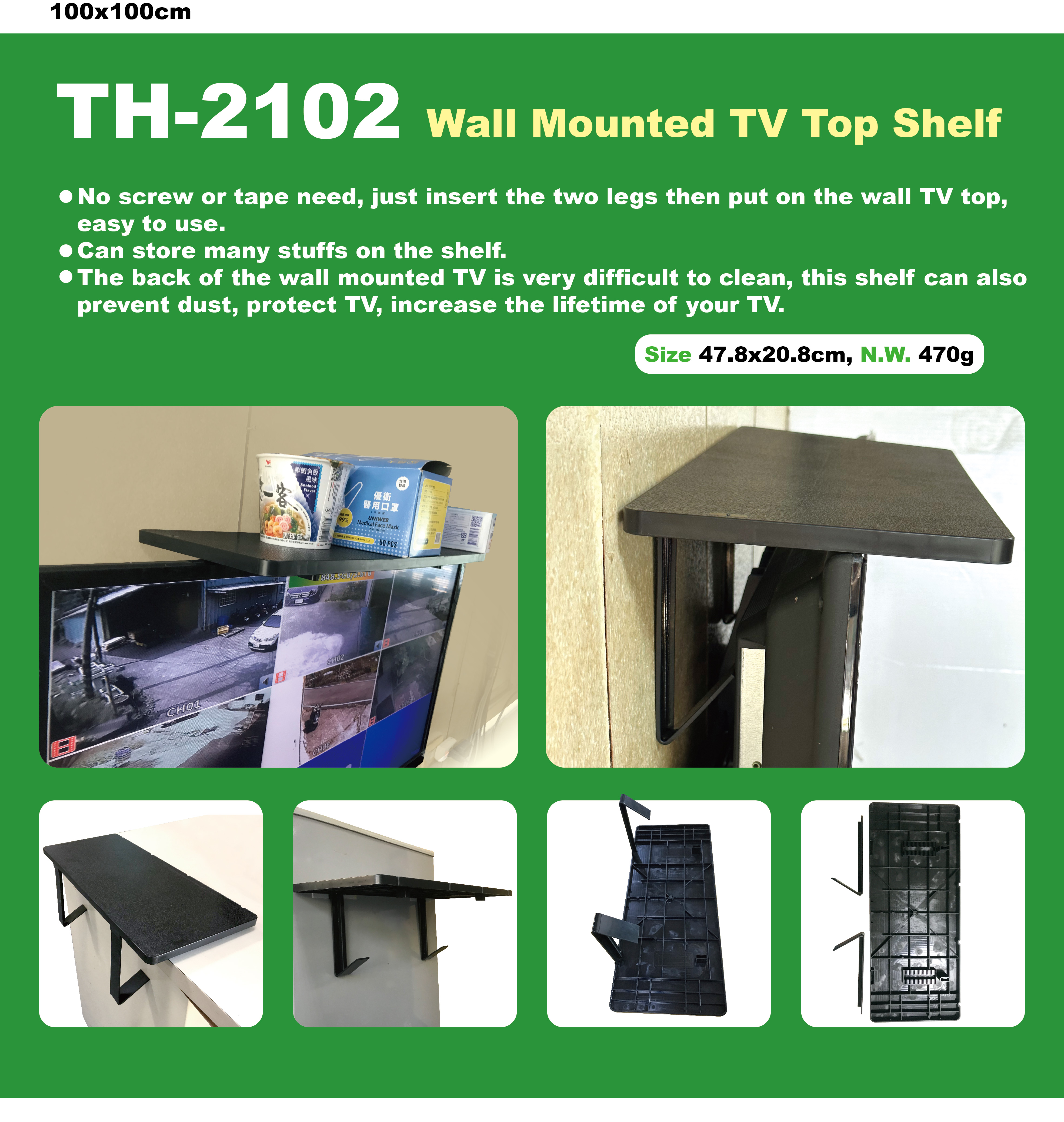 *No screw or tape need, just insert the two legs then put on the wall TV top, easy to use.