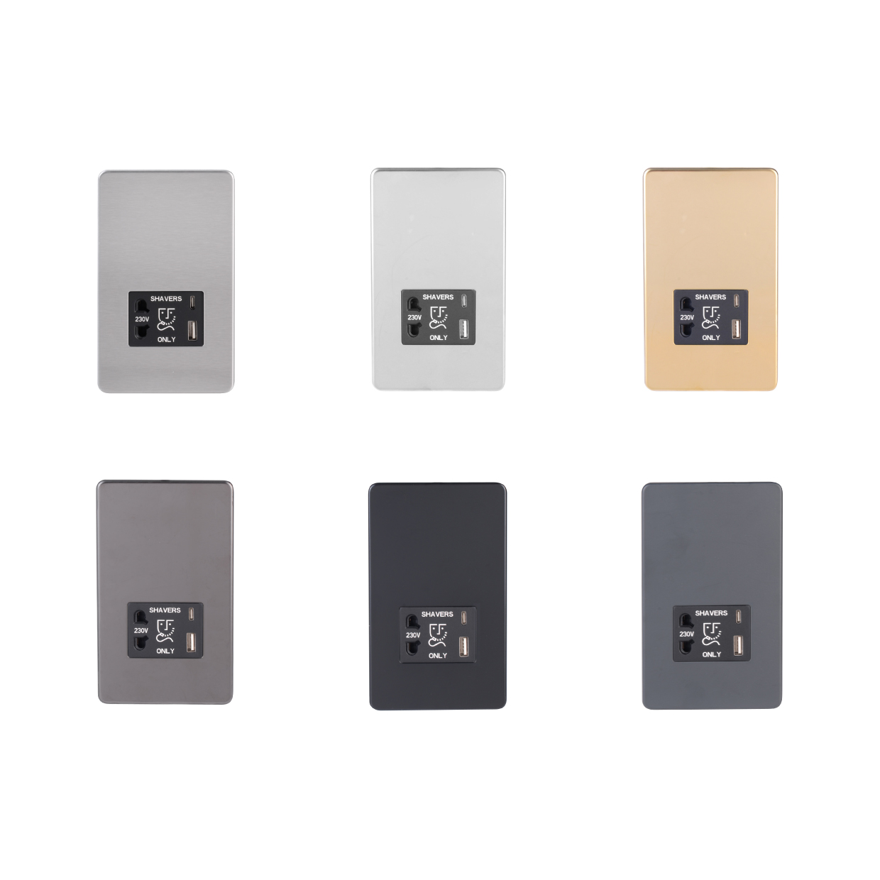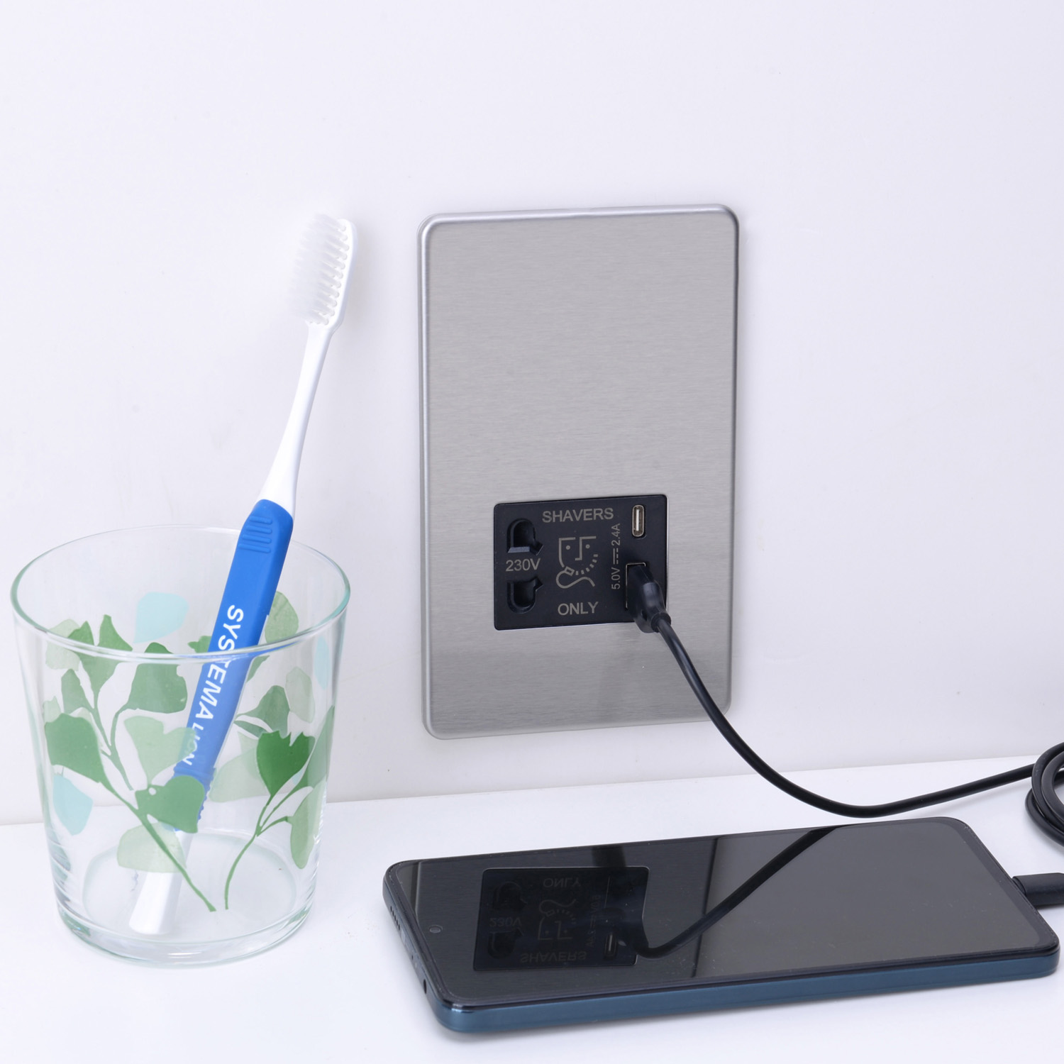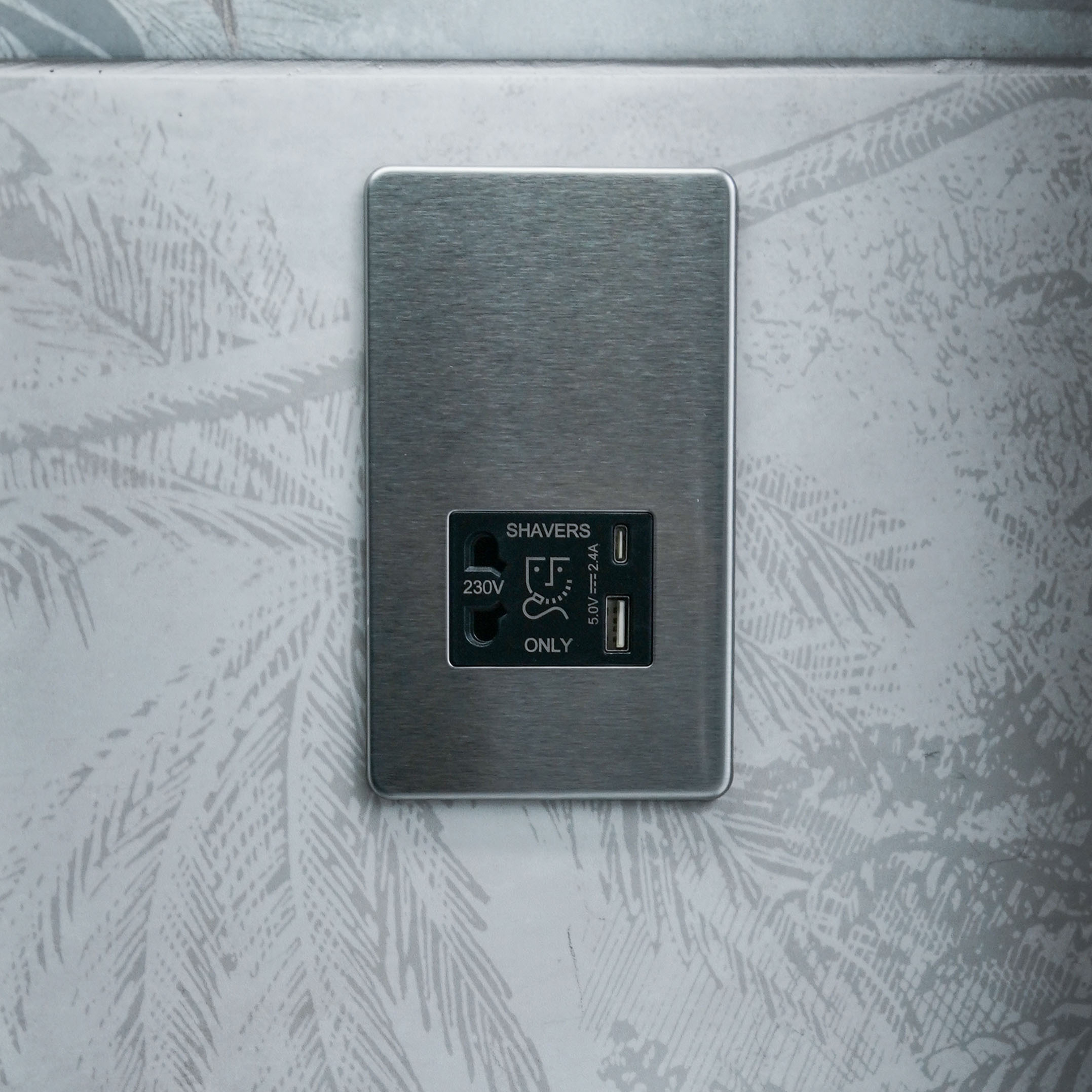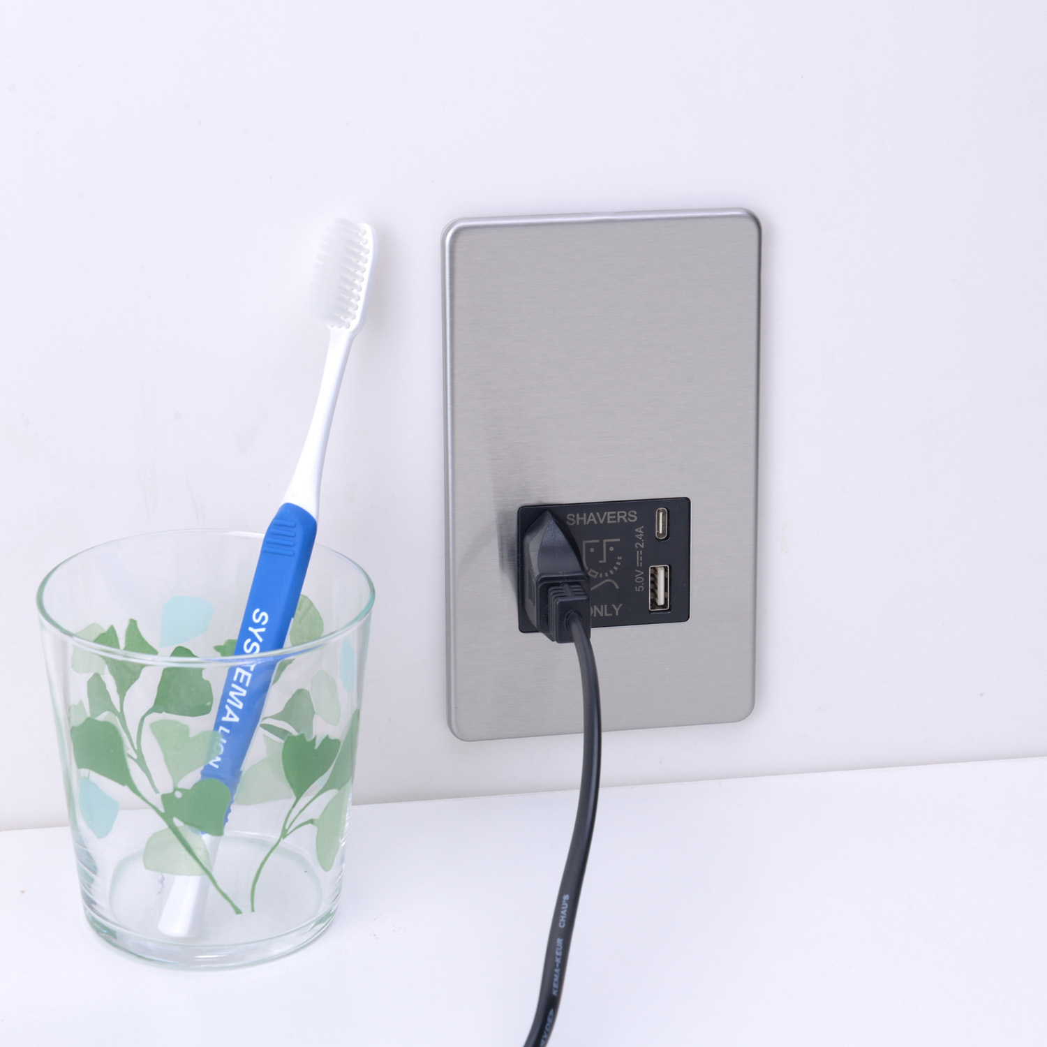 Our ultra-slim screwless shaver socket is crafted from premium 1.0 mm steel, offering a sleek and contemporary look.