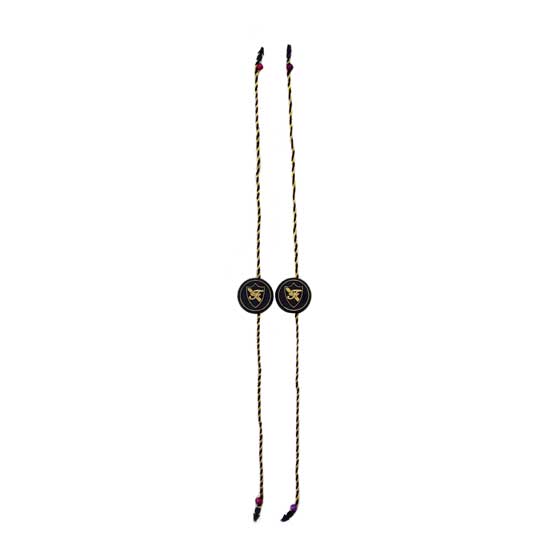 This functional garment seal cord can be used to attach hang tags to garments. The seal cord is made of two-toned strings with a round-shaped central plate. Customize logos can be printed on the plate for promotional use.