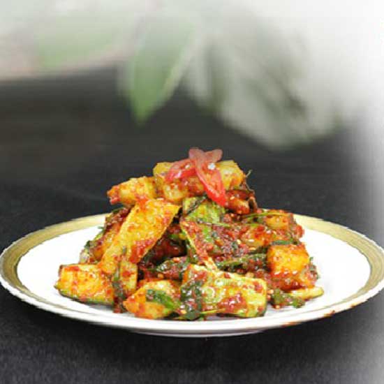 The seasoned cucumber is characterized by its sour and sweet flavor. It is rich in vitamins, minerals and dietary fibers. Prepare Korean cuisines with this seasoned cucumber.