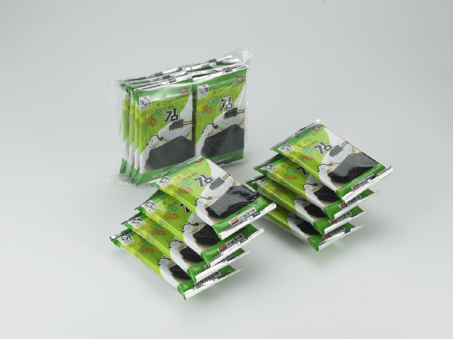 Seasoned and roasted after being selected from general laver. Good for a lunch box and convenient for eating out as laver is packaged in one bag hat contains 6 x 1/8 sheets.