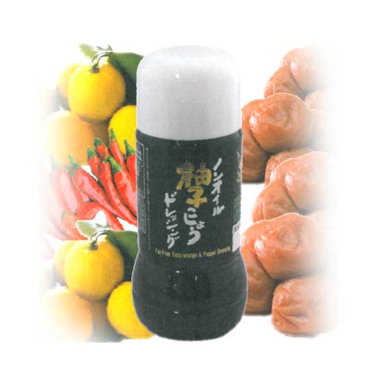 Displayed is a seasoning sauce of yuzu and pepper. With a secret recipe, this sauce incorporates the refreshing sour taste of yuzu and the appetizing spiciness of pepper. This unique seasoning sauce is ideal for salads and other dishes.