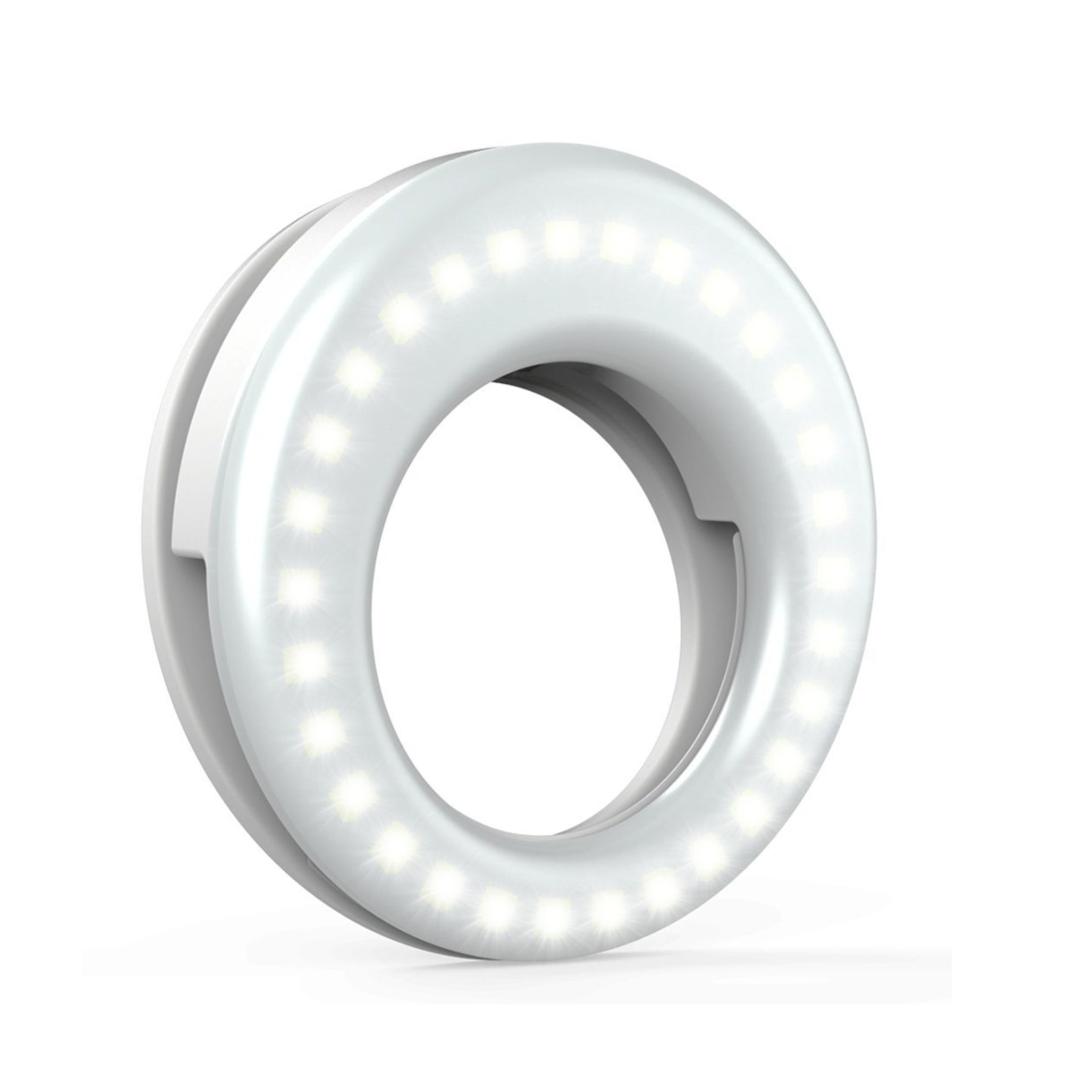 Rechargeable with USB Cord. This ring light includes a built-in rechargeable battery so you do not need extra batteries. Money saved and free from annoying battery replacement.