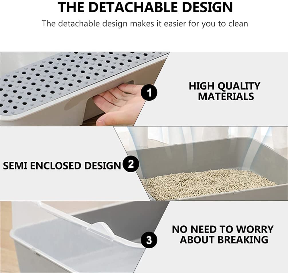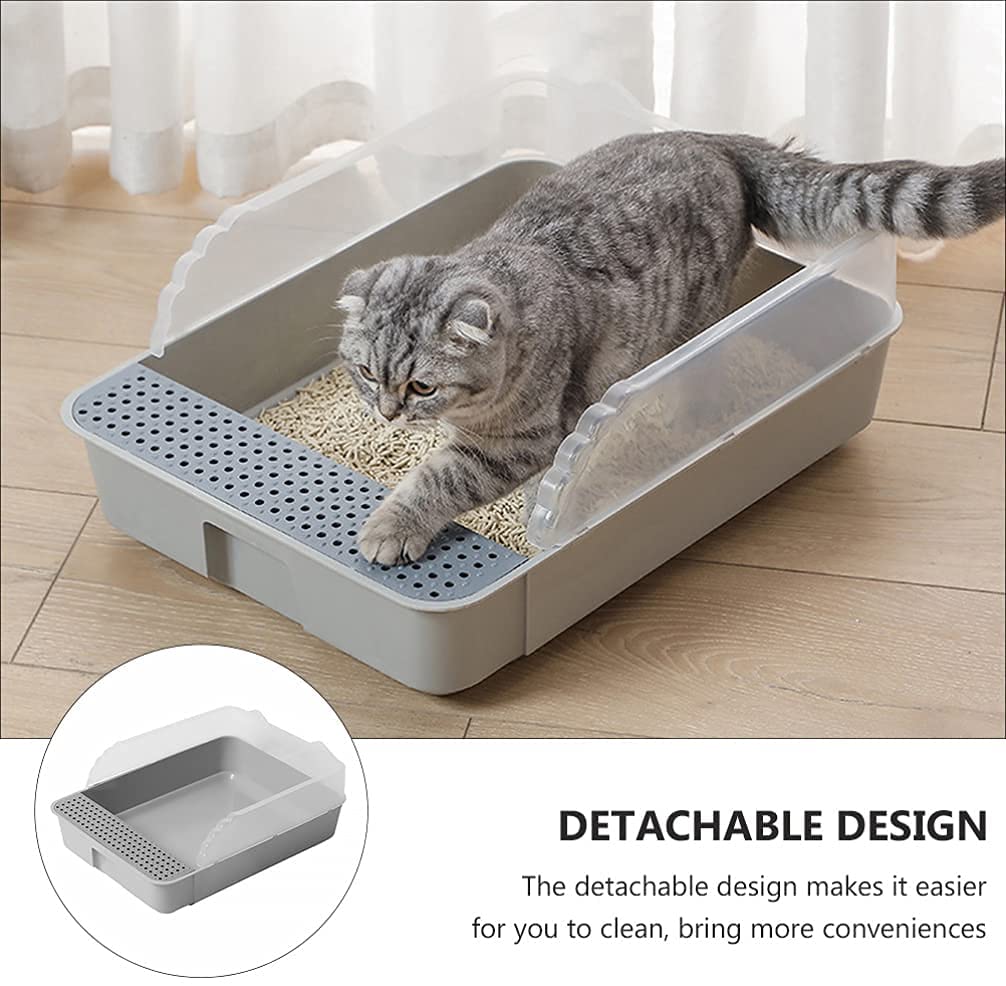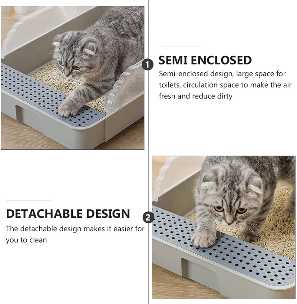 Semi Enclosed Cat Litter Case Box Cat Toilet Sand Drain Pedal Semi Enclosed Space Kitten Cat Litter Pan PetSize:42*29*18CMMaterial:PPWeight:0.58kg