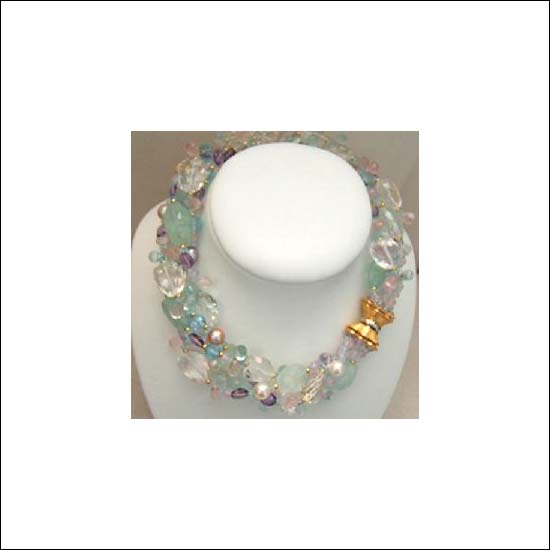 The ladies'' necklace is also decorated by rock crystal nuggets and aquamarine nuggets
