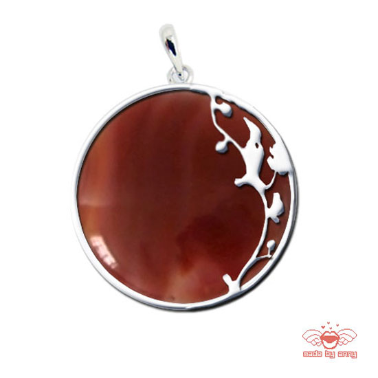 The round-shaped pendant is nicely crafted with lustrous semi-precious stone for alluring elegance. The silvertone rim adds a shiny finishing touch to the jewelry piece, while the silhouette of a vine by the edge reveals a sophisticated image. This beautiful pendant makes the perfect match with mature ladies.