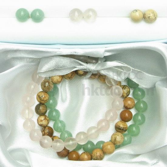 This mix & match jewelry set comprises three sets of earrings and bracelets. They are finely made with 8mm semi-precious stones. A packaging box is included for gift presentation.