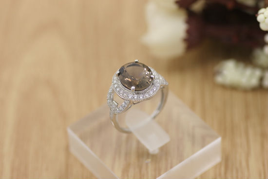 10x12mm Oval Amethyst w/42pcs 1mm aaa cz Silver Ring