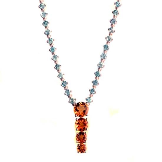 This necklace comes with semi-precious stones in blue and brown colour. The chain is mounted with small, equally spaced blue beads, while four round-shaped faceted stones are well mounted in gradual sizes, the uppermost one being the biggest.