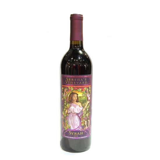 This is a bottle of Serena's Vineyards from California, USA. Made from finely selected Syrah, this red wine is aged for 18 months for a rich taste with depth. This medium dry table wine is ideal for accompanying steaks.