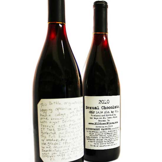 This Sexual Chocolate is a true California wine blending old vine Zinfandel with warm climate Santa Barbra Syrah. The Zinfandel presents a rich and warm feel that could be confused with biting into a chocolate covered cherry. The Syrah adds a smooth, deep and refined finish. This red wine pairs well with late nights and friends.