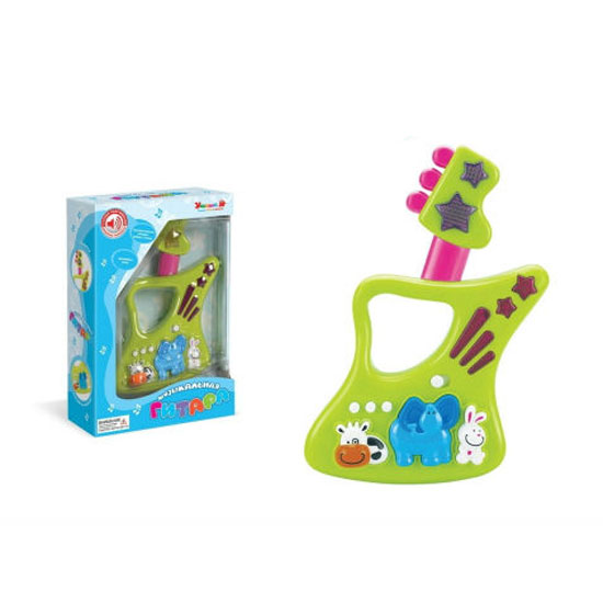 This shaking bell comes with the design of an electronic guitar in green. Some cartoon animals like a rabbit, a cow and an elephant are embossed on the top of the bell for added fun. This shaking bell will provide hours of amusement for your baby.