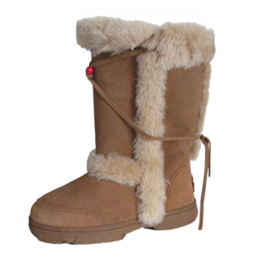 These fashionable ladies' shearling boots feature a mid-calf styling. The boots showcase suede uppers and soft wool lining promise added warmth and comfort. They can be worn cuffed down for a versatile look.