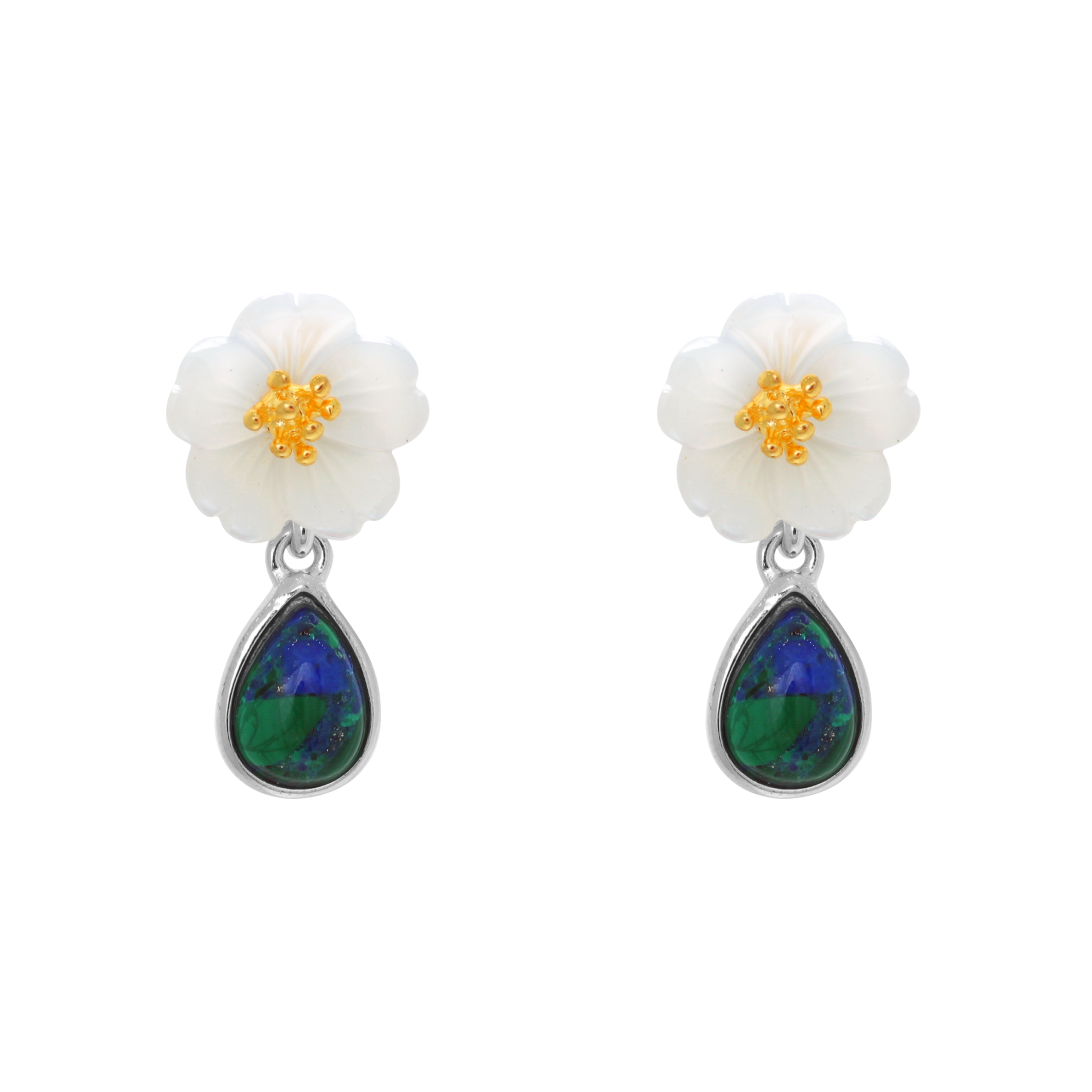 Shell Flower Azurite Earrings