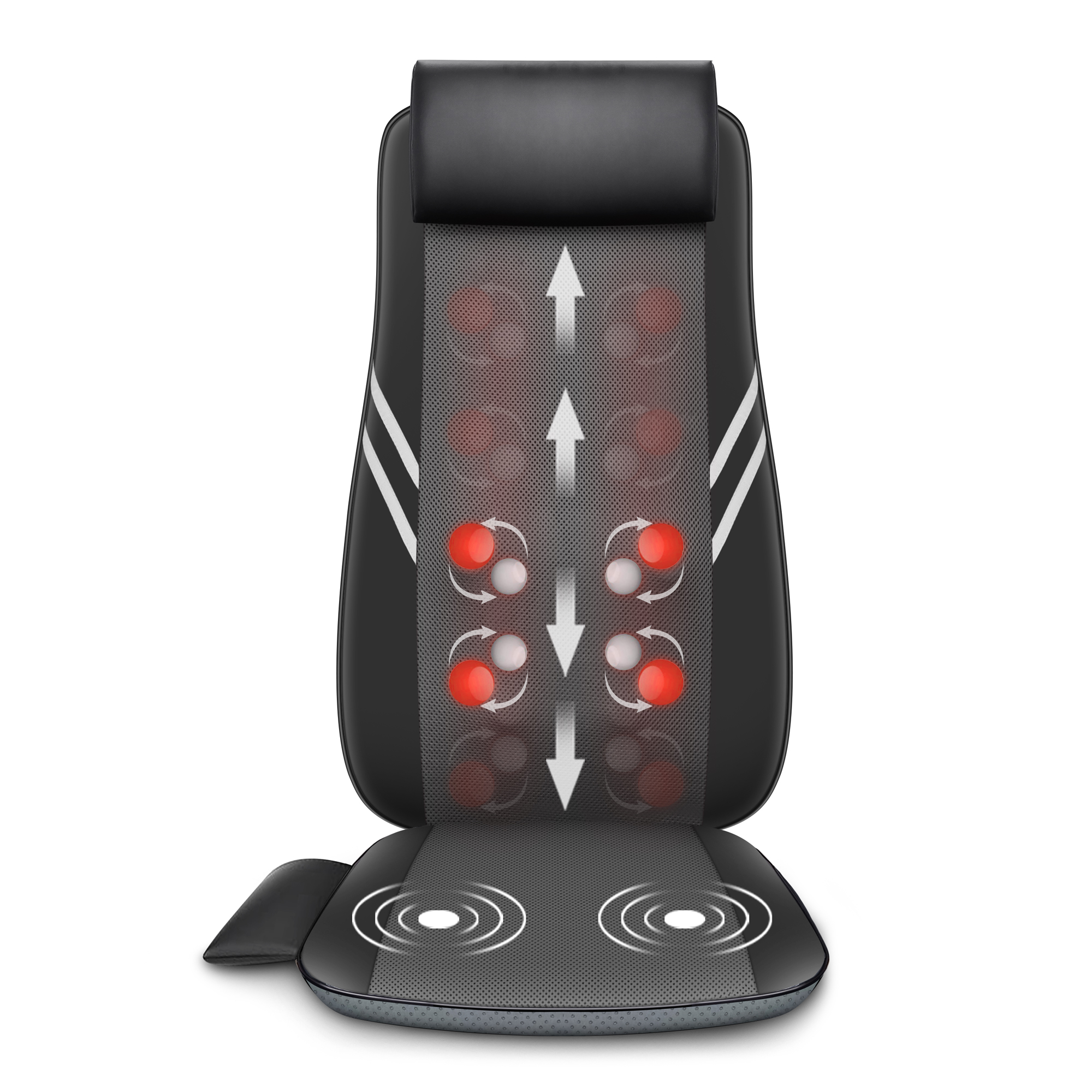 2. 8 rotating massage nodes can reach the bottom of your lower back and your shoulder.