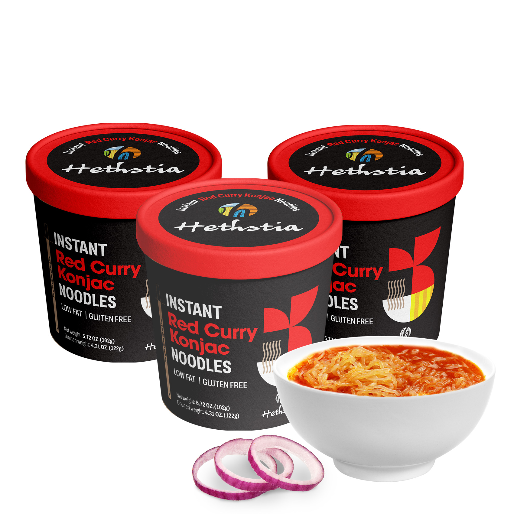 Shirataki instant noodles pasta red curry, also known as Konjac Instant Noodles, is versatile. It is healthy, low-calorie, carb-free, gluten-free, fat-free, sugar-free, and vegan. Shirataki noodles are calorie-free, filling, and full of healthy fiber. For shirataki noodles purchase, choose Sentaiyuan, MOQ 20 cases.