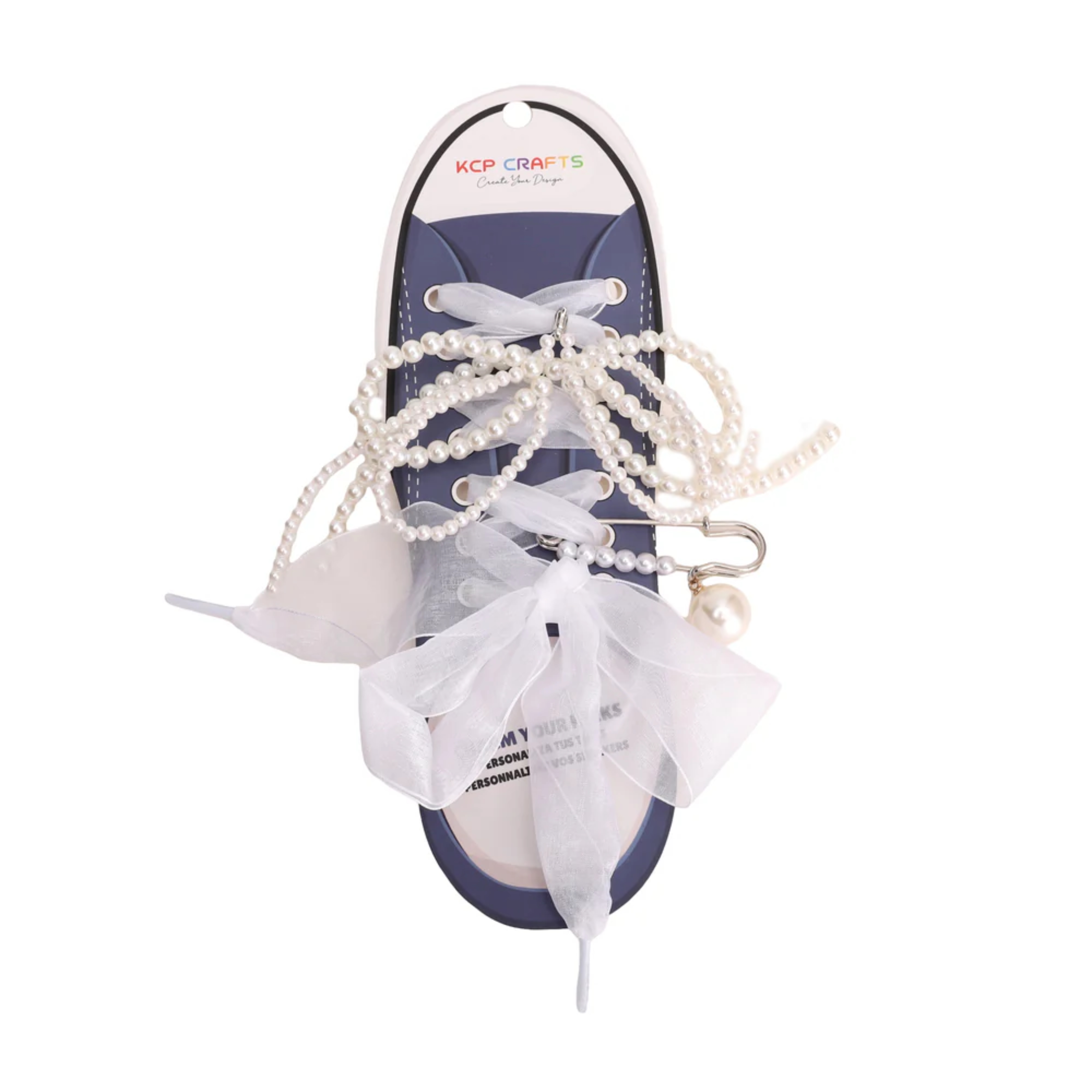 This lace bow shoe charm features delicate lace, pearl details and a soft bow design, ideal for creating a sweet, feminine look on sneakers.