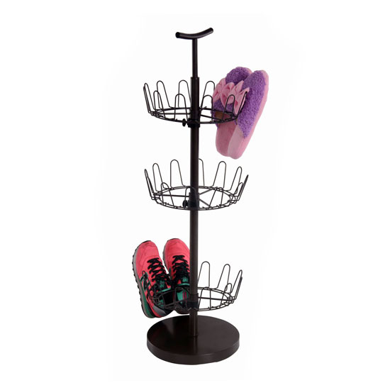 This is a three-layer shoe hanger with a round base. It comes with a robust housing for a long service life. This high-quality shoe hanger is an ideal addition to your household.