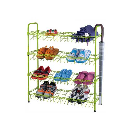 This is a shoe rack that comes with a robust four-layer structure. It is meticulously designed to organize and store your shoes neatly. The ultra-slim and compact design allows easy storage.