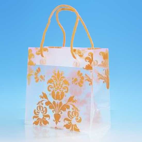 This shopping bag is printed with golden motifs to display an elegant look. The quality plastic construction is durable for carrying heavy stuff. This shopping bag can be printed with customized logos for promotion.