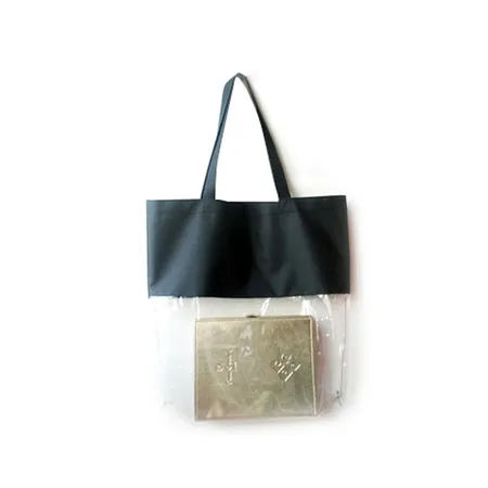 This black-and-transparent shopping bag flaunts a contemporary touch. It is designed with a big compartment and can hold many items with the high-strength, durable PVC material. It looks trendy and is comfortable.