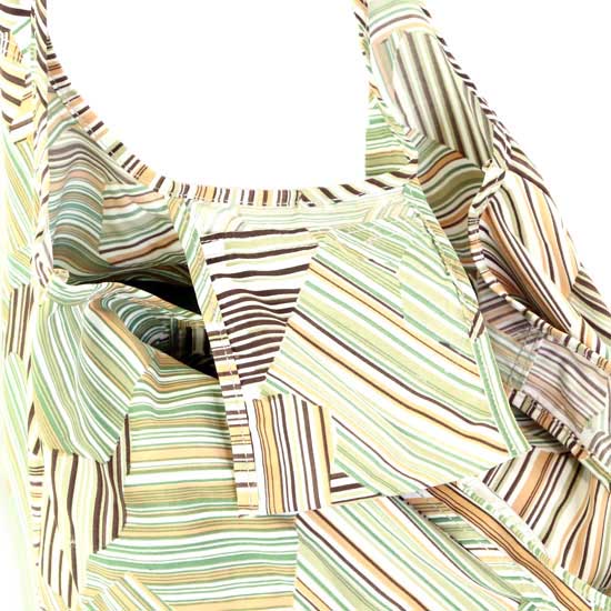 This foldable shopping bag is made of high-quality polyester for durability. It comes with overall striped patterns for an eye-catching look. This polyester shopping bag is a great choice for daily use.