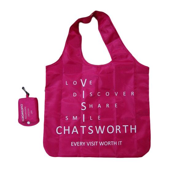 This is a shopping bag that can be folded into an extra-compact size. It is made of polyester material for durability. This bag has a large compartment for storing assorted sundry groceries