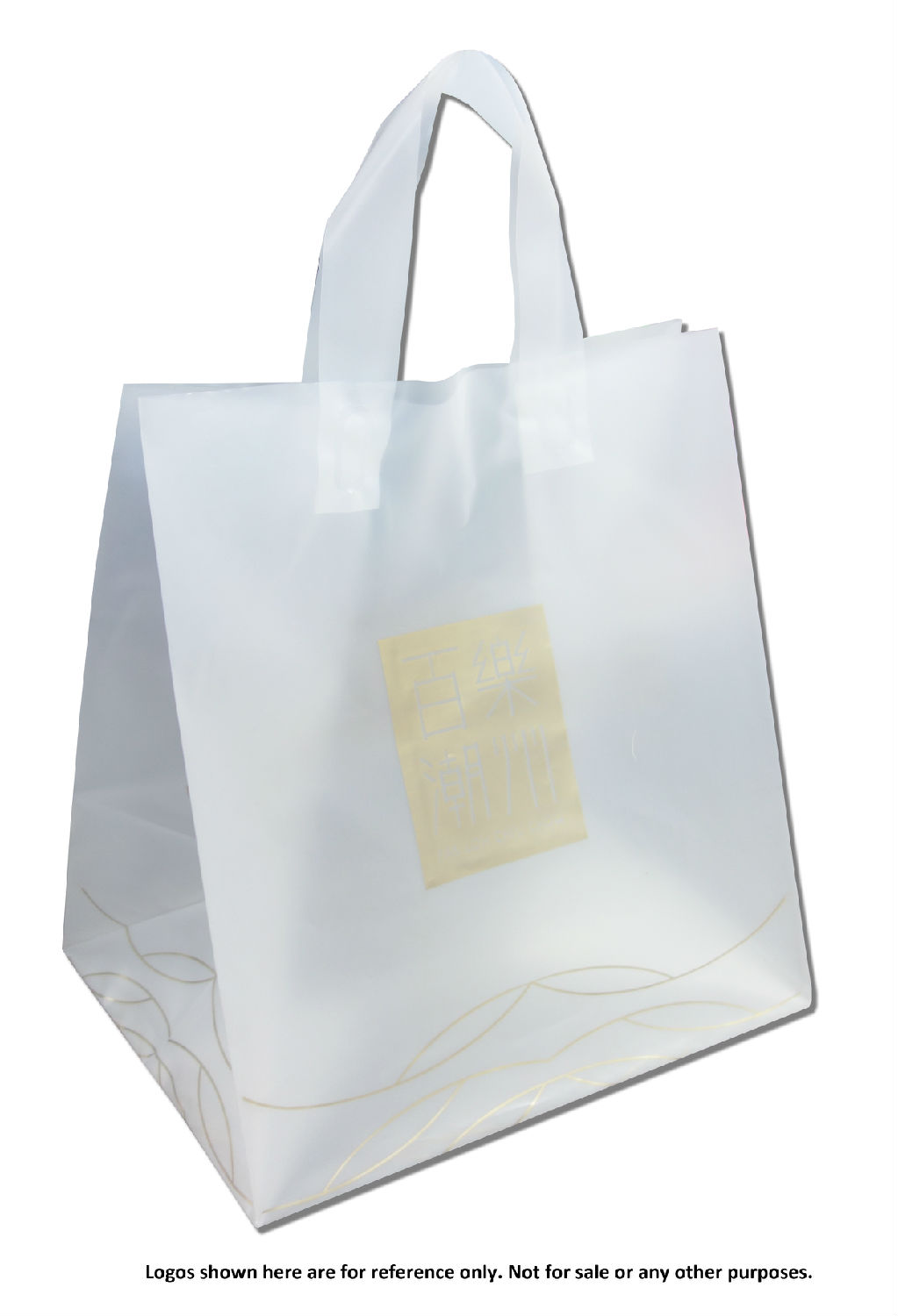 Featured here is a plastic shopping bag with a pair of soft loop handles for carrying. It is rectangular shape and has a side gusset structure to provide ample storage space. This shopping bag can be printed with brand names or logos on the exterior and is excellent for promotion use.