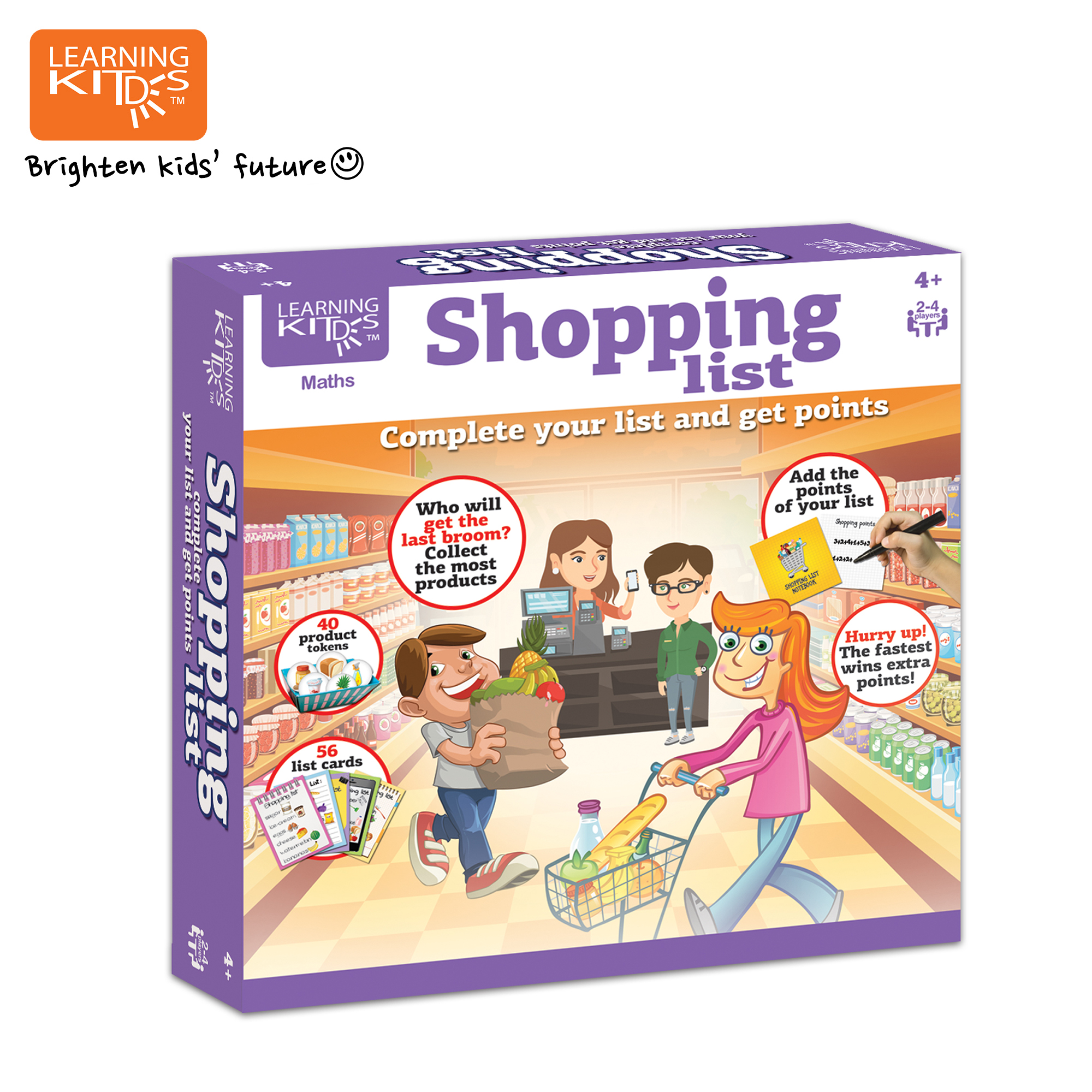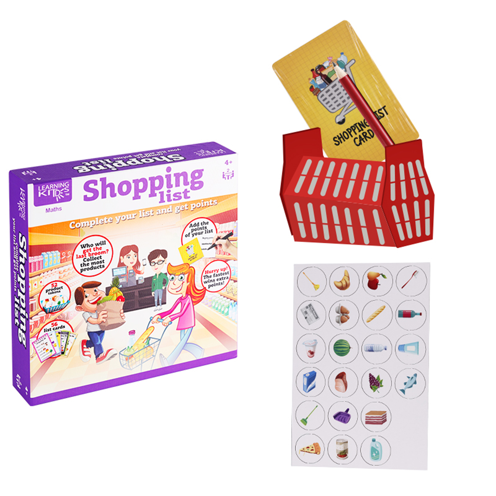 an exciting educational board game for kids that builds recognition skills and teaches the value of money! Players complete shopping lists by identifying products, matching them to prices, and adding up points to win. Perfect for young learners, this fun game introduces products and prices in a colorful, interactive way, fostering math and decision-making skills.