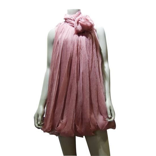 This is a sleeveless short dress for ladies. The feminine dress is pale pink in color. The light silk and satin materials used make it comfortable to wear.