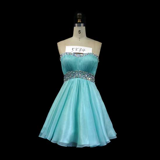 This short dress is made of high-quality 30D chiffon. Aqua color is the fashion element of this year. Its neckline and waistline are meticulously adorned crystal beaded elements for added uniqueness and elegance.