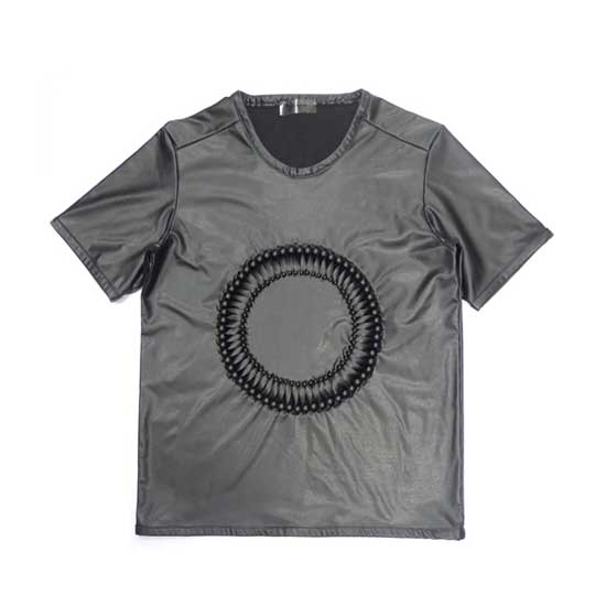 This fashionable T-shirt features a beaded circular design on the front. The finely manufactured T-shirt delivers satisfying wearing comfort. It is a great option for you stylish wardrobe.